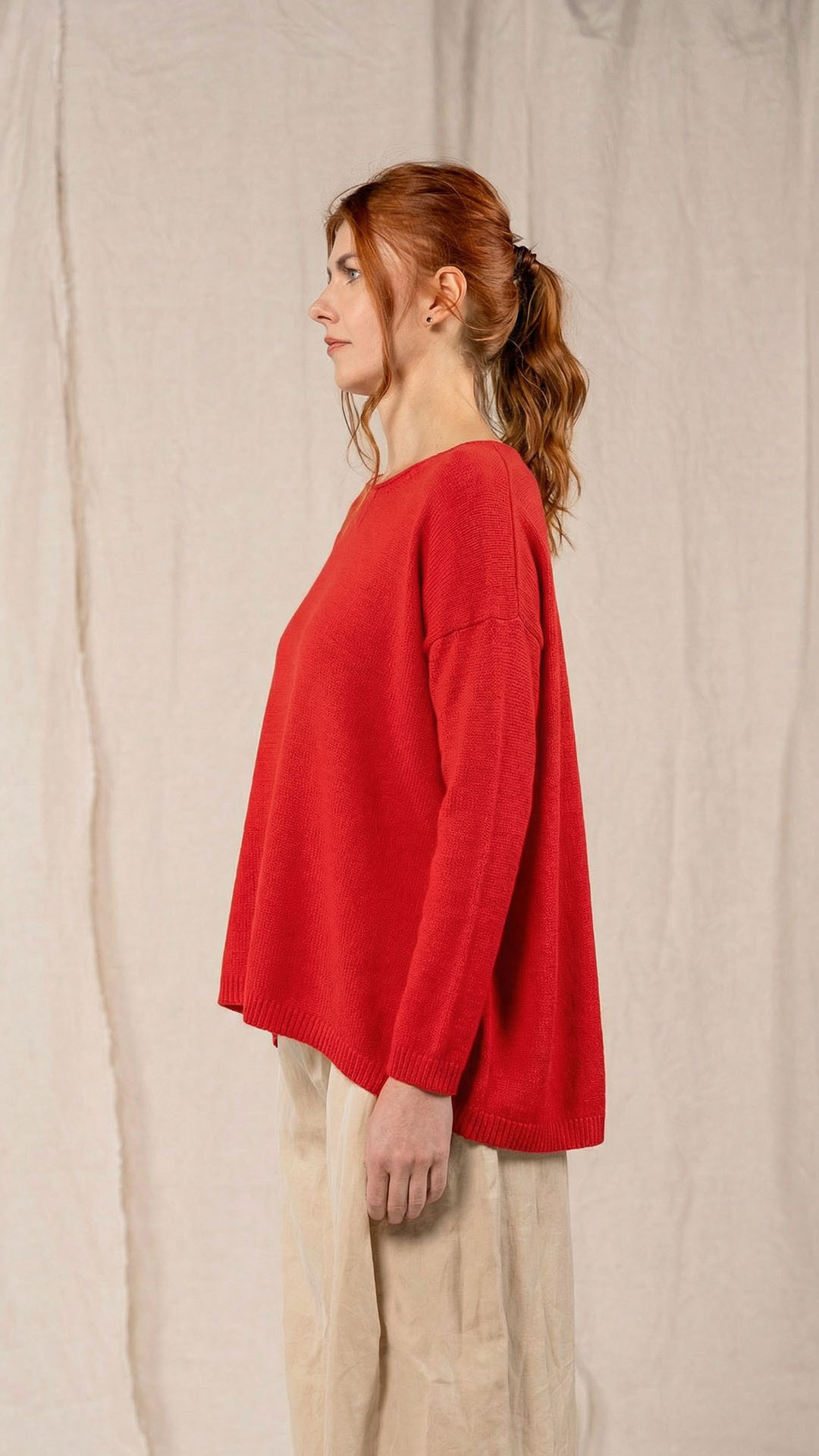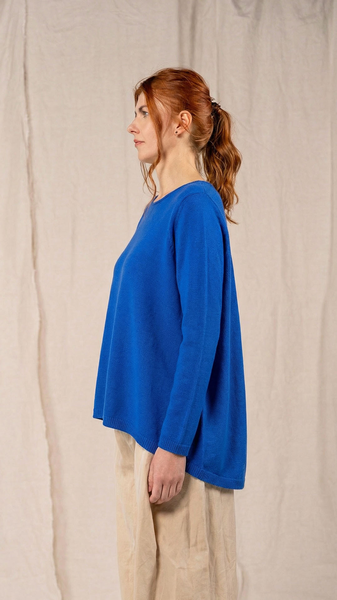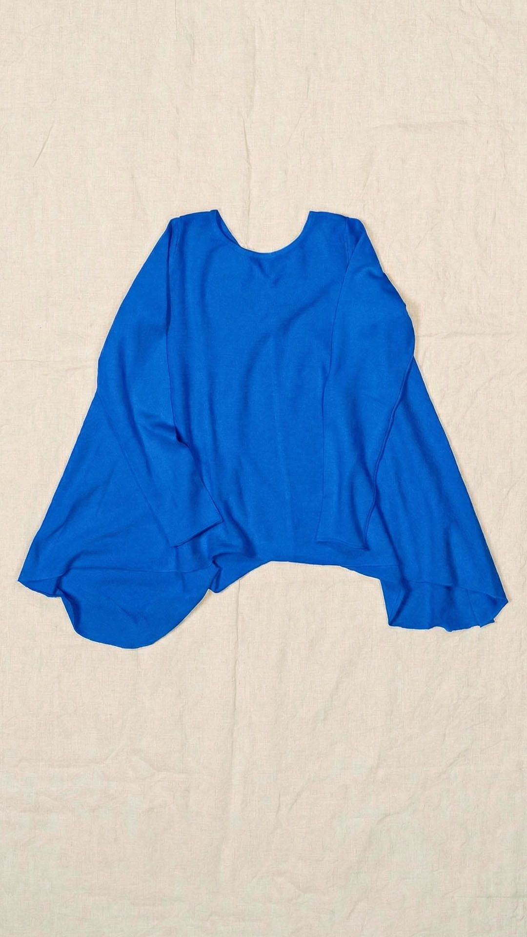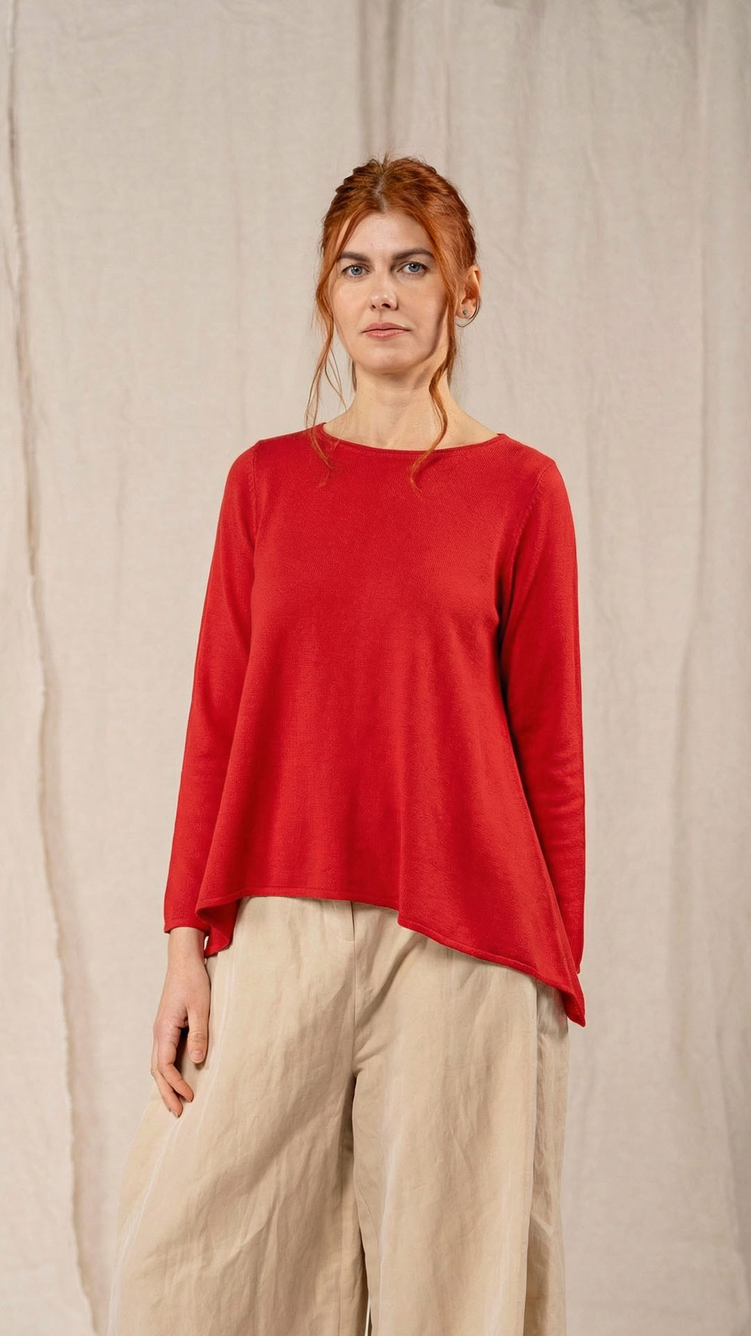 Maglia caratterizzata da una cucitura lungo la schiena che dona morbidezza e genera due leggere “code”, aggiungendo movimento al capo. Può essere indossata in chiave sportiva o abbinata a tessuti più sofisticati, come il taffetà, per un look raffinato e contemporaneo.