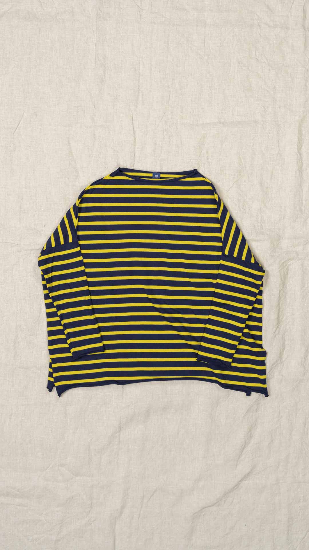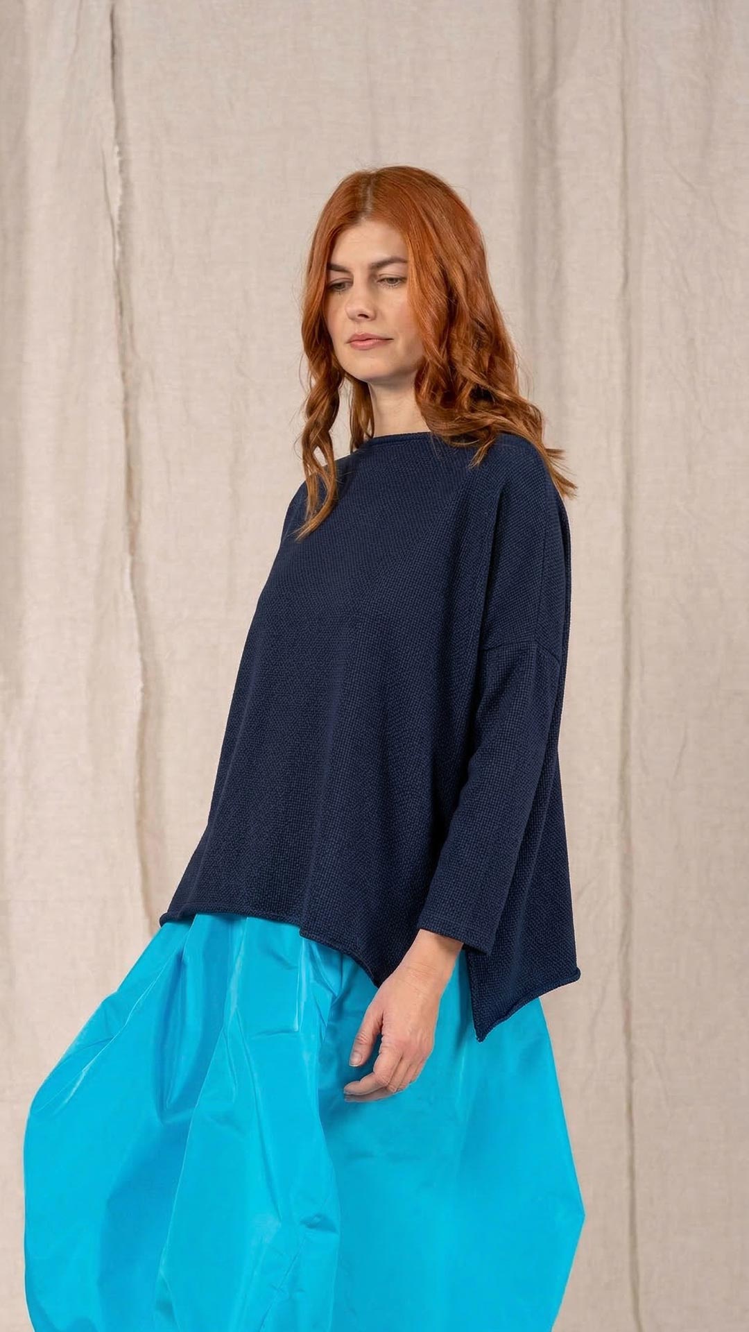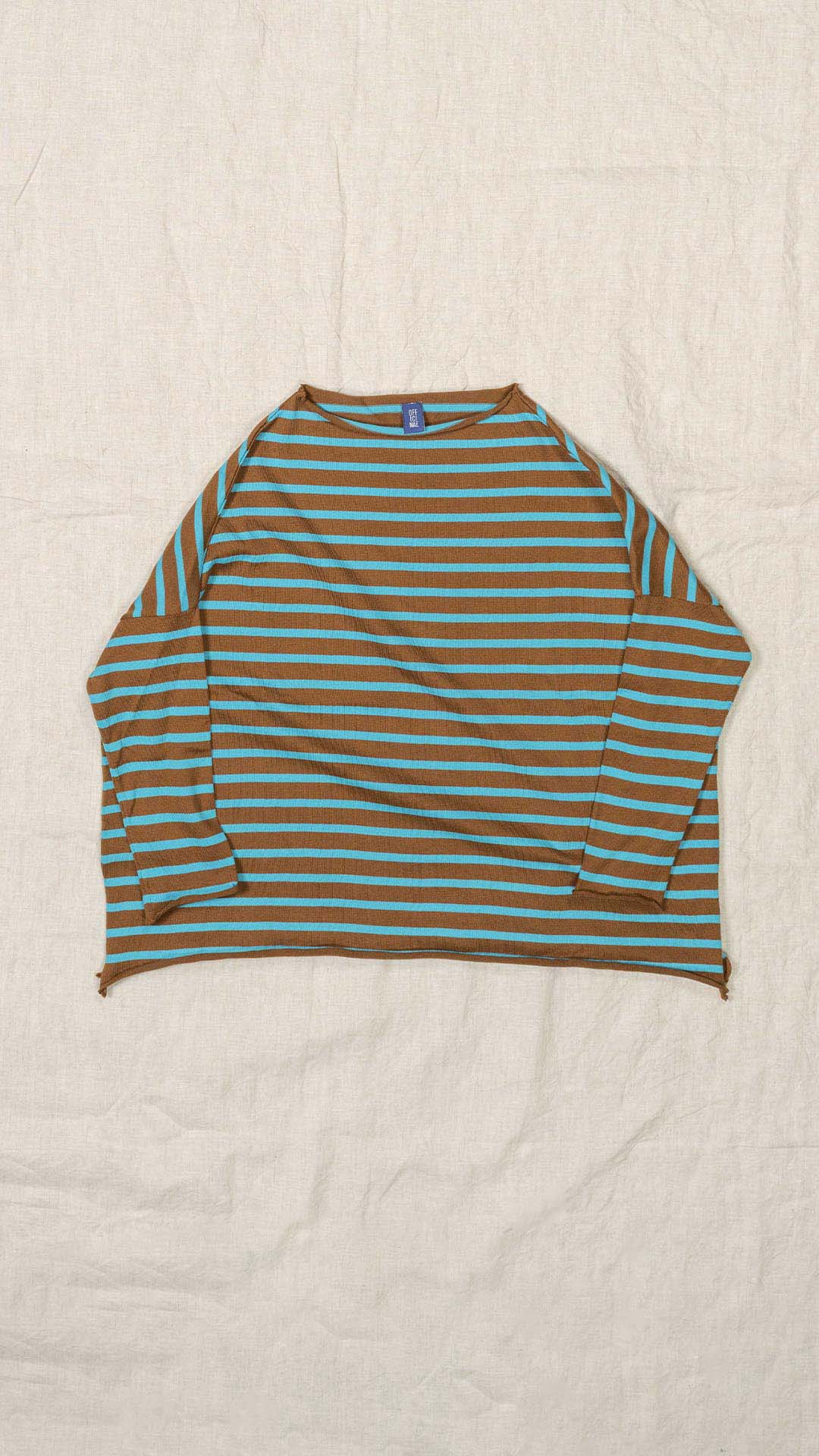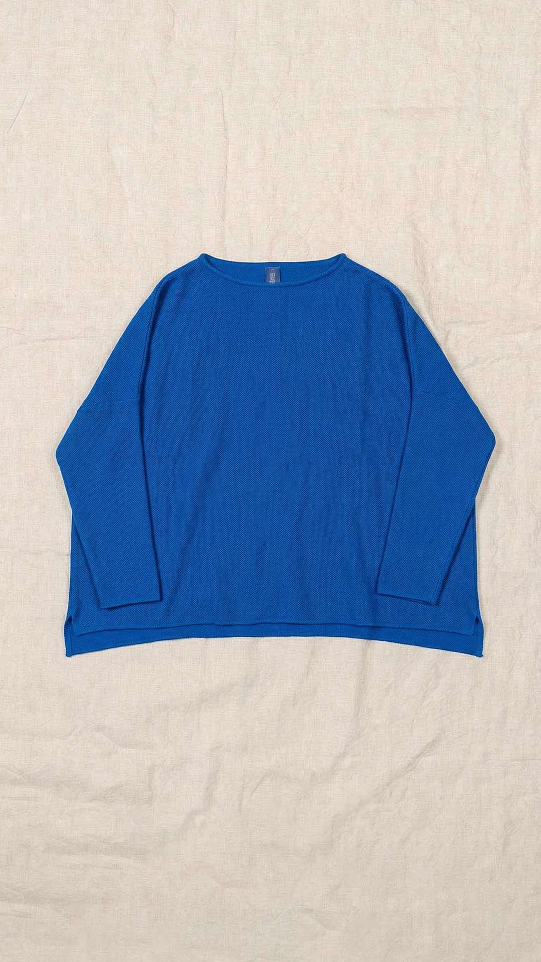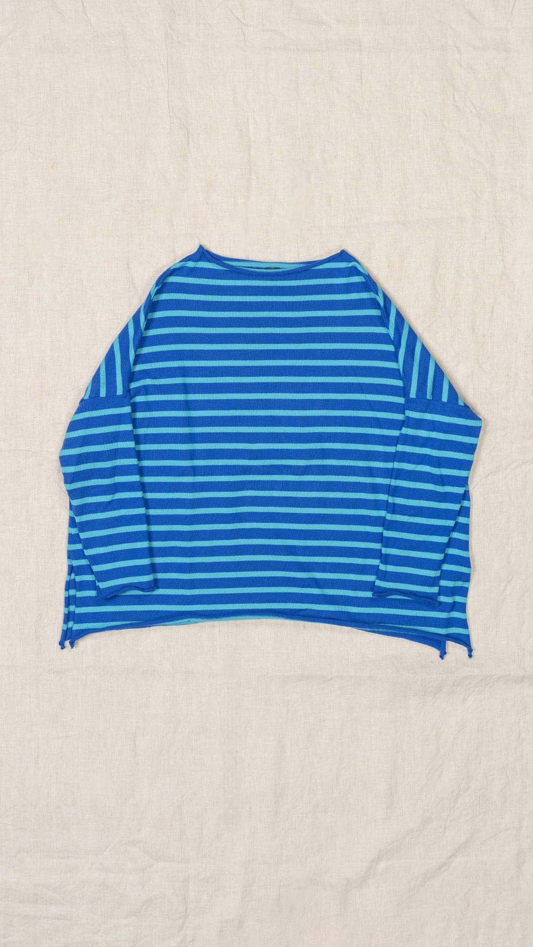 Maglia over con scollo a barca, spacchi laterali e manica scesa. Molto facile da abbinare grazie alla sua forma versatile. Perfetta anche con un jeans o un pantalone più stretto.