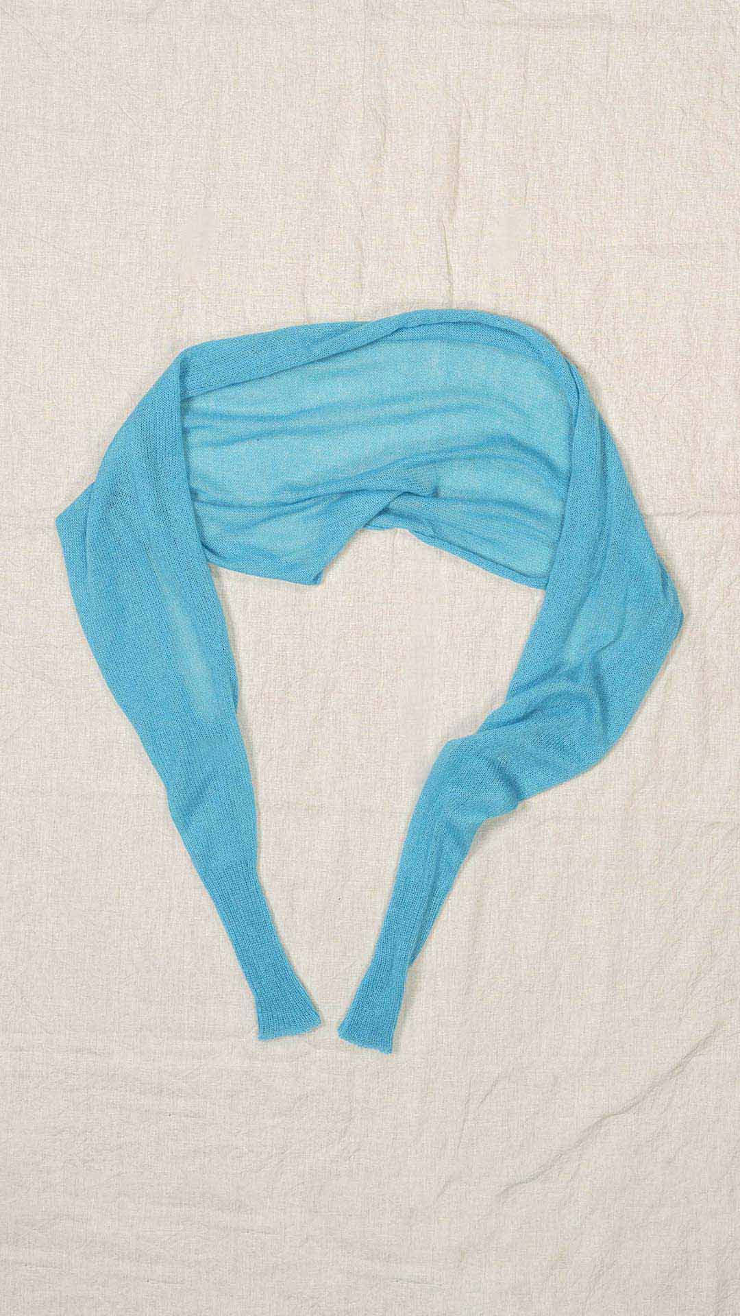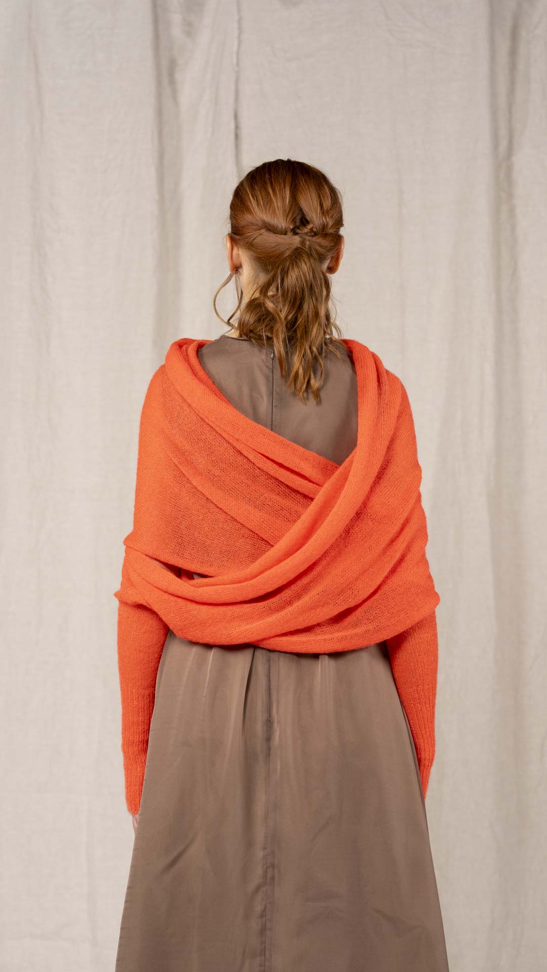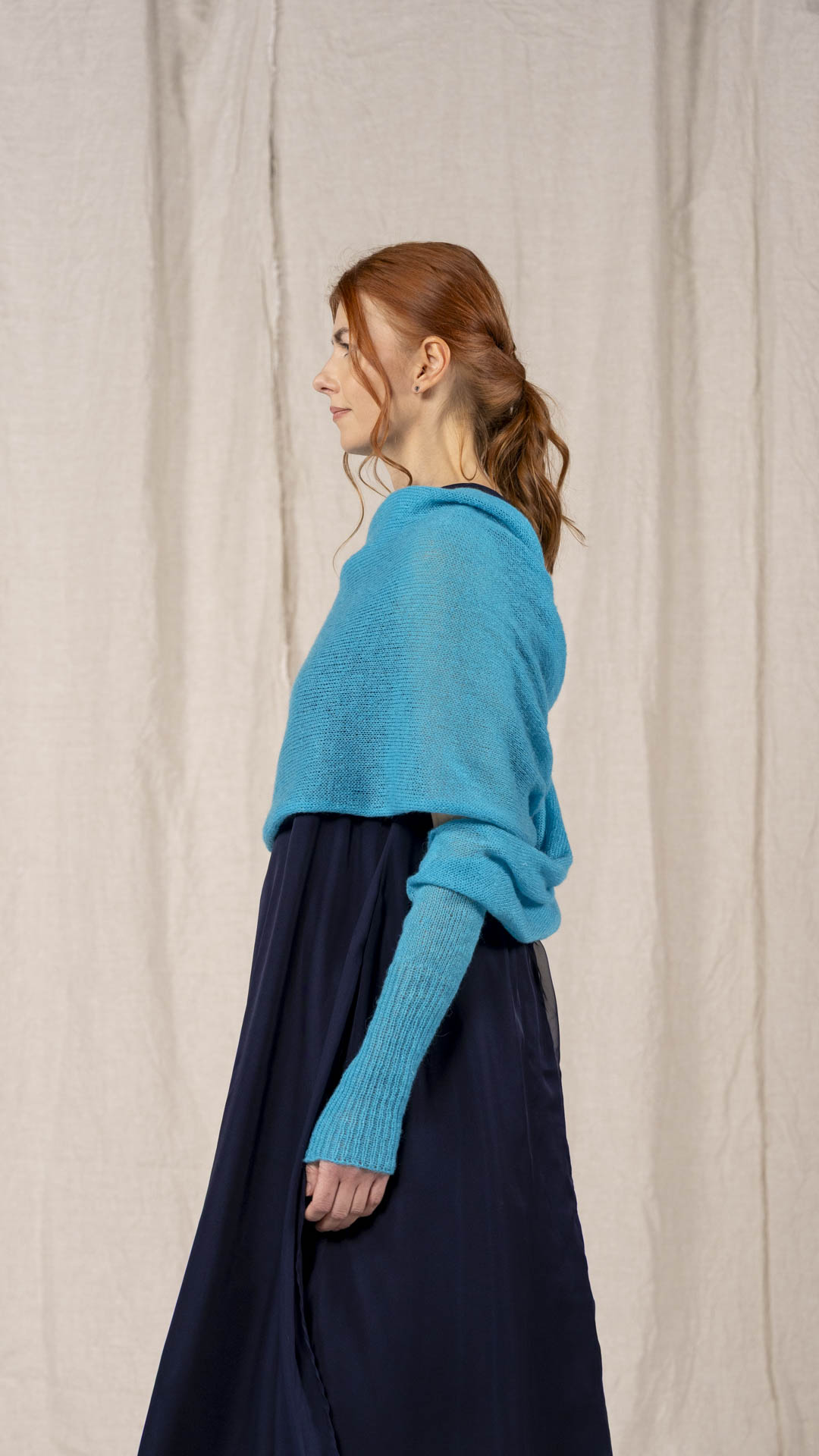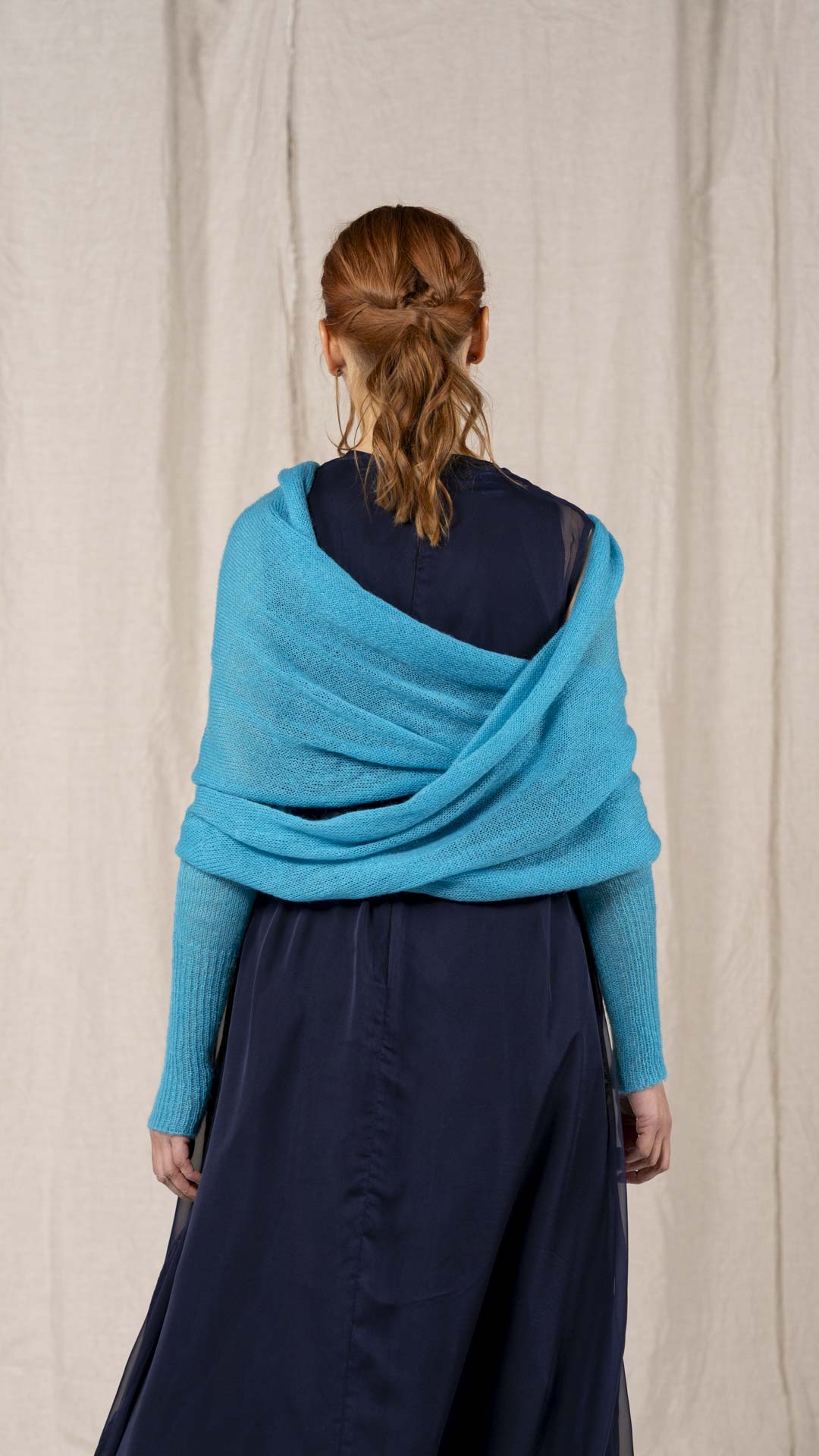 Sciarpa con polsi, pensata per essere indossata a completamento di abiti scollati o sovrapposta a top leggeri, come soluzione elegante per le serate estive.