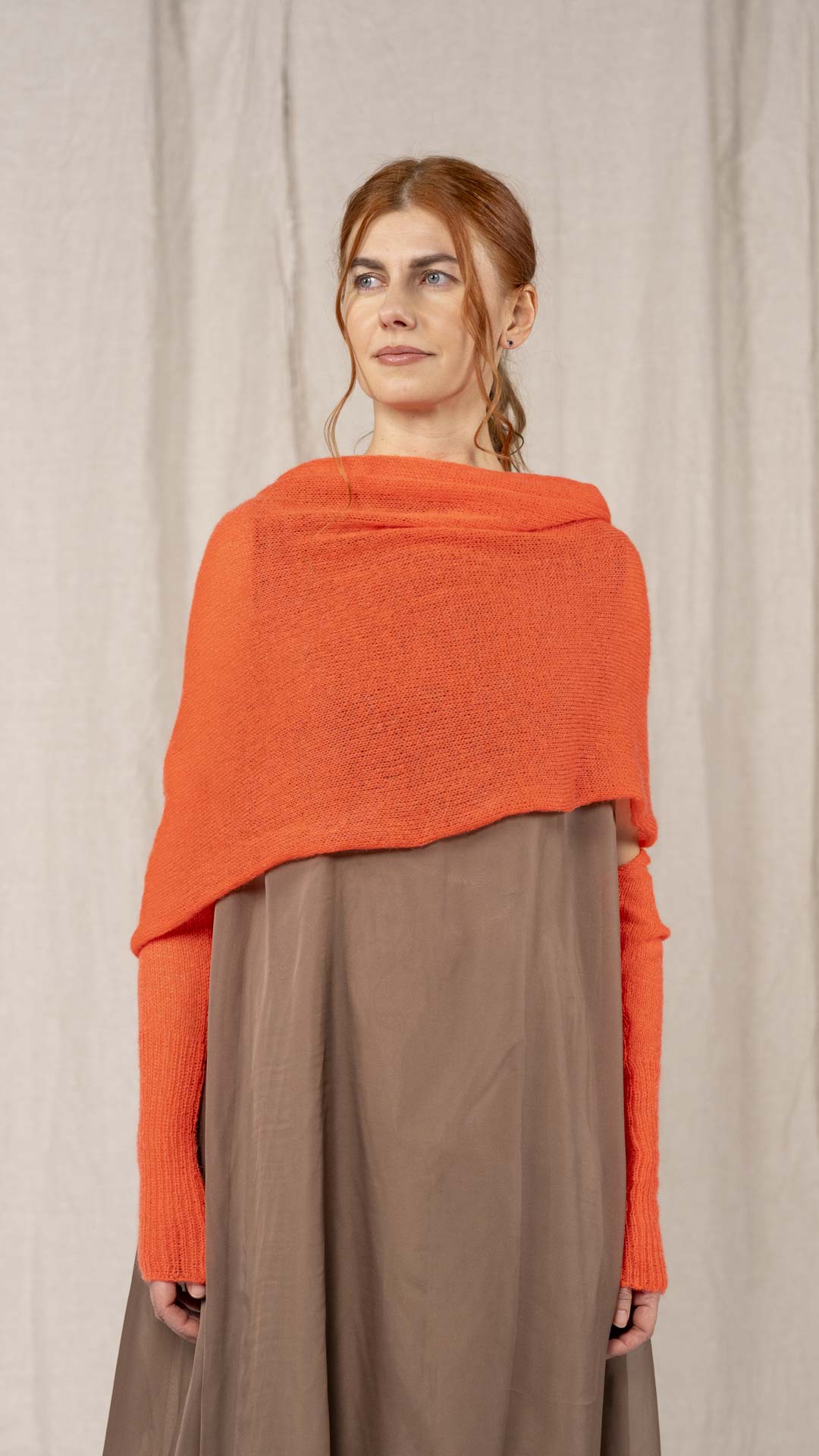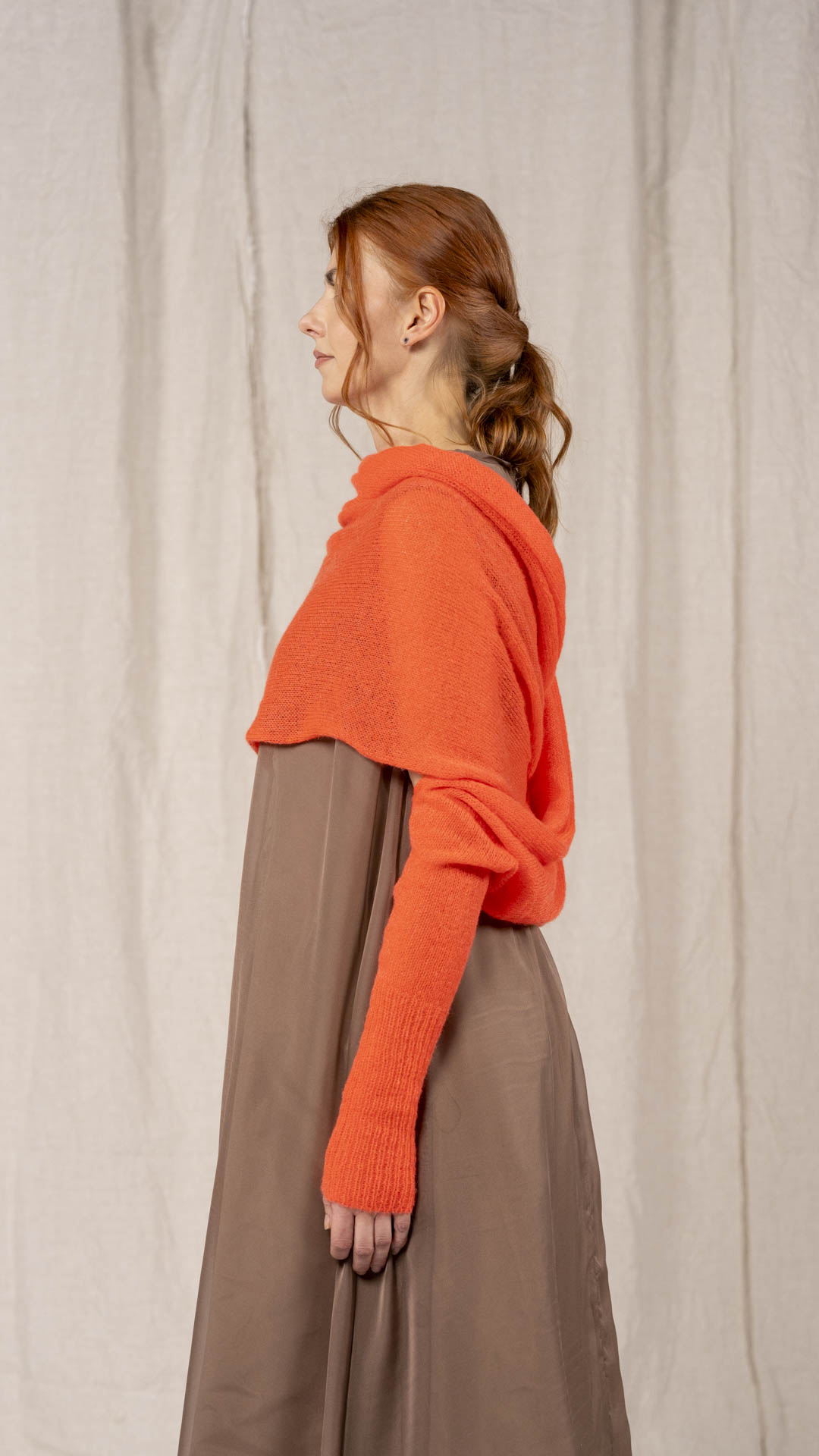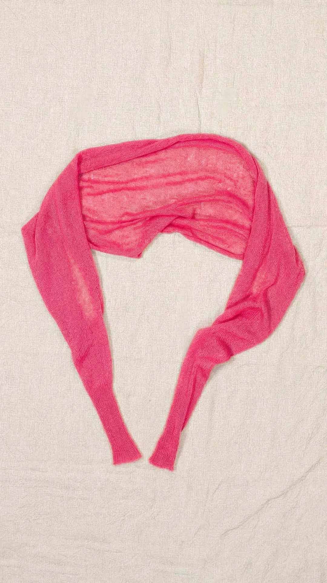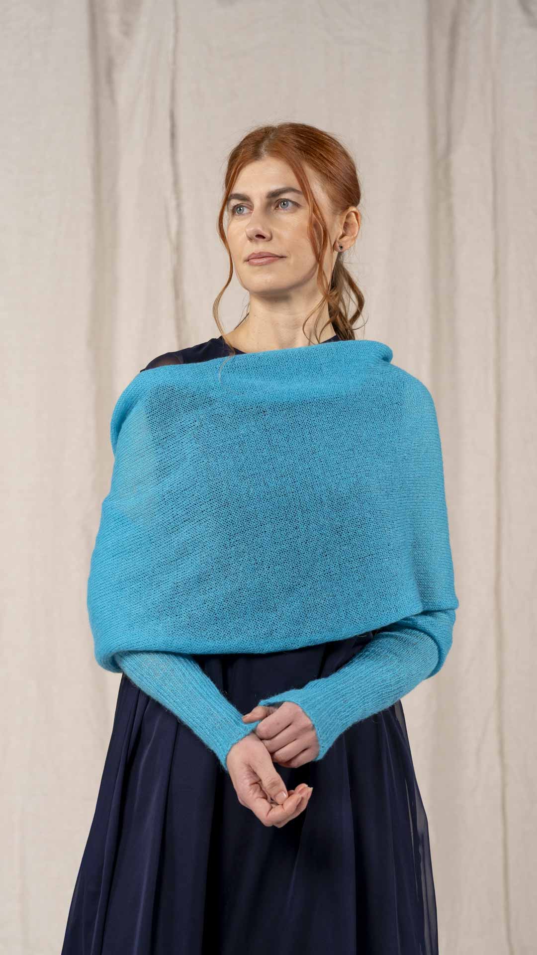 Sciarpa con polsi, pensata per essere indossata a completamento di abiti scollati o sovrapposta a top leggeri, come soluzione elegante per le serate estive.