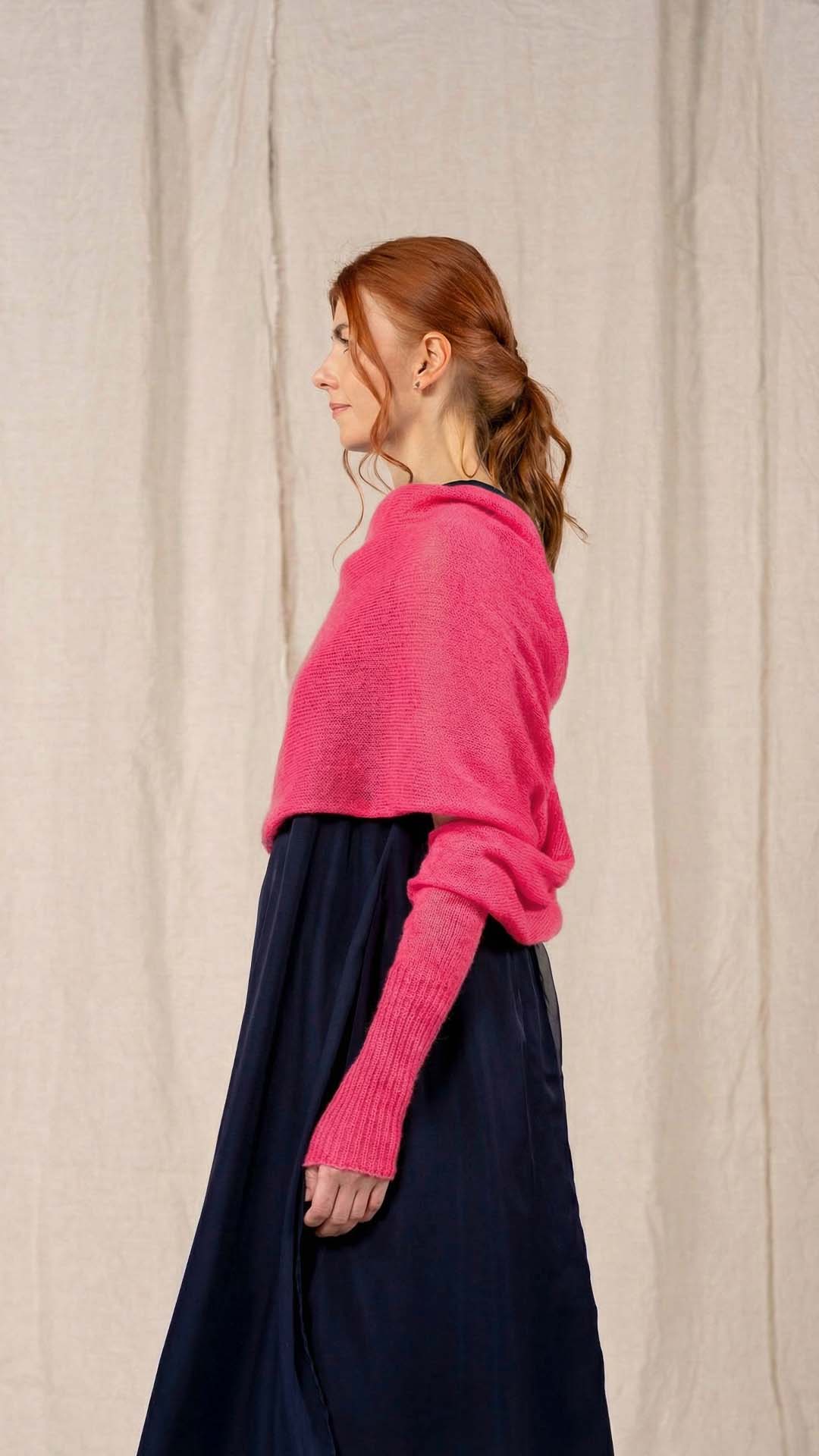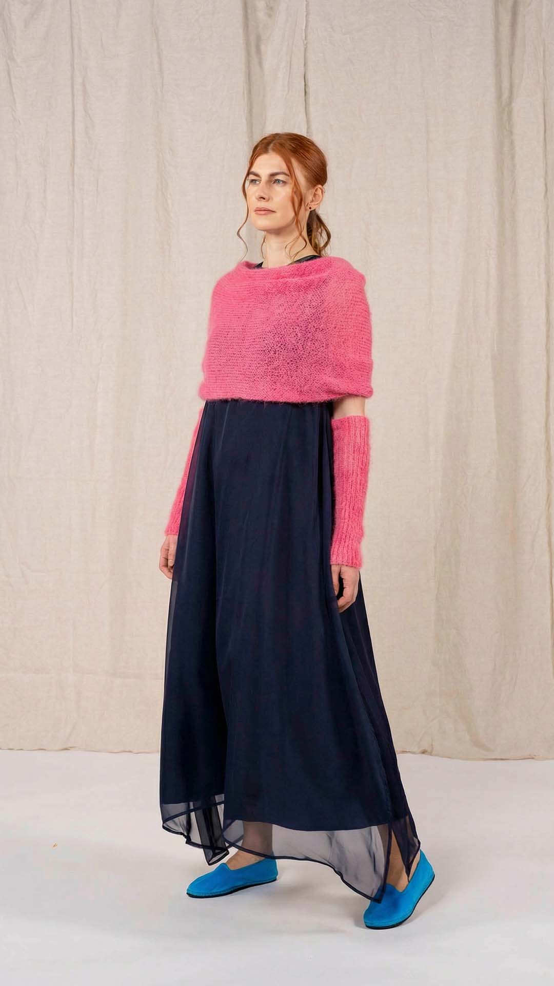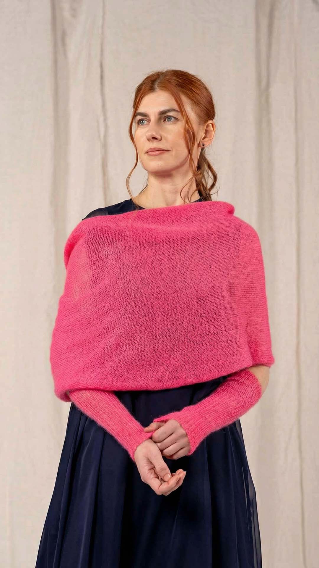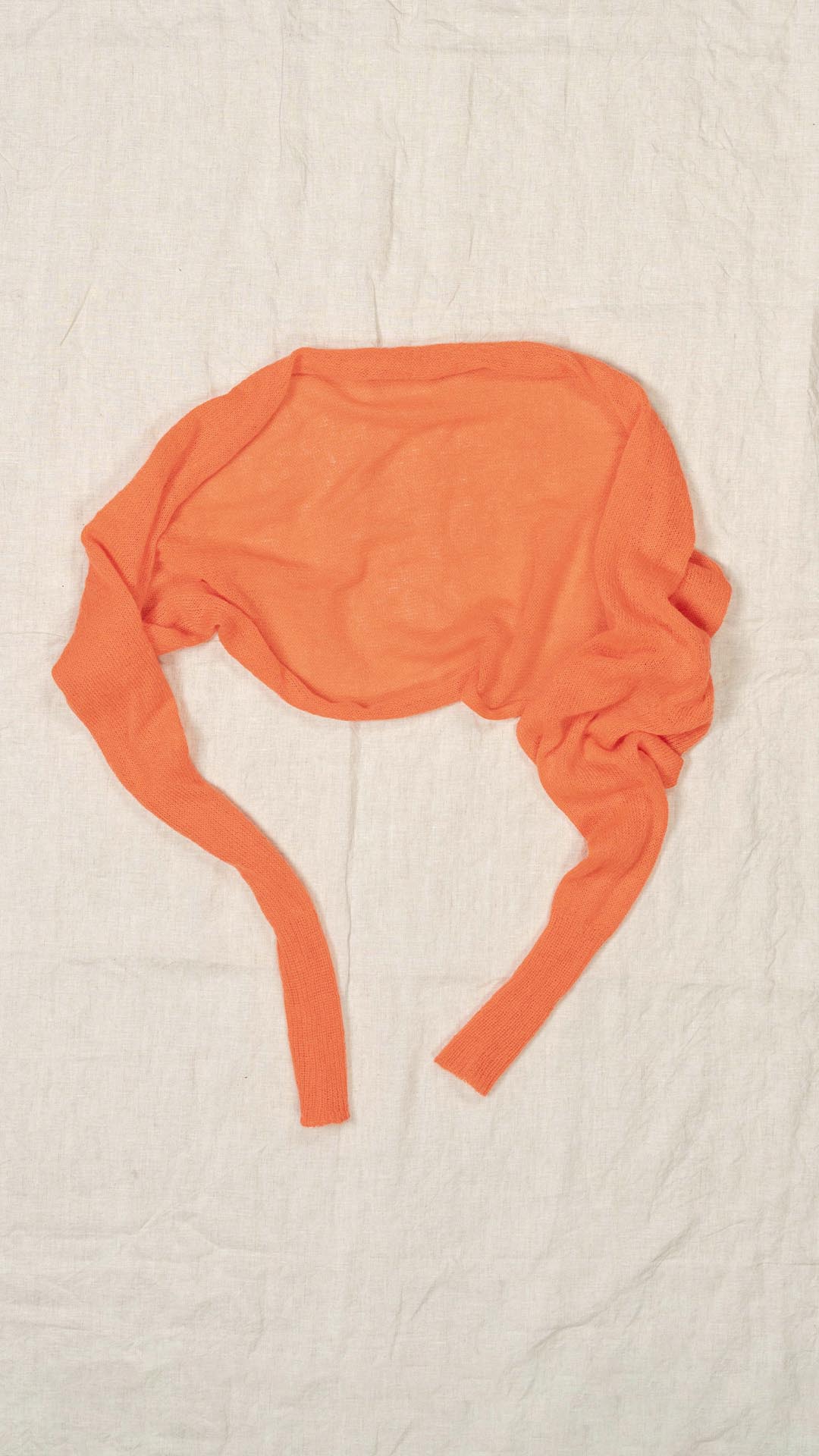 Sciarpa con polsi, pensata per essere indossata a completamento di abiti scollati o sovrapposta a top leggeri, come soluzione elegante per le serate estive.